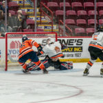 Getting their goalie out for an attacker, the Soo came close to sending it to overtime as a last-second effort clipped off the cross bar and stayed out just as time expired.