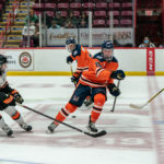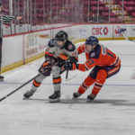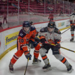After some more extended pressure by the home side that was quelled by Gennaro, the Lumberjacks’ Riley Klugerman broke free on a play lifted out of his own zone and darted down the right side, then sped past a defender and snapped a quick shot from the circle over the blocker of Metivier to put the visitors ahead 2-1 with 21 seconds to play in the second stanza.